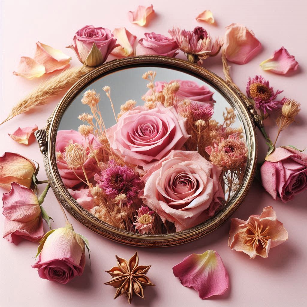 Ma attenzione: se scossa o trascurata, la rosa essiccata può disintegrarsi, perdendo in un attimo la sua bellezza e il suo valore. Così, un cuore o un’anima, se non trattati con la giusta attenzione, possono frantumarsi sotto il peso delle avversità.