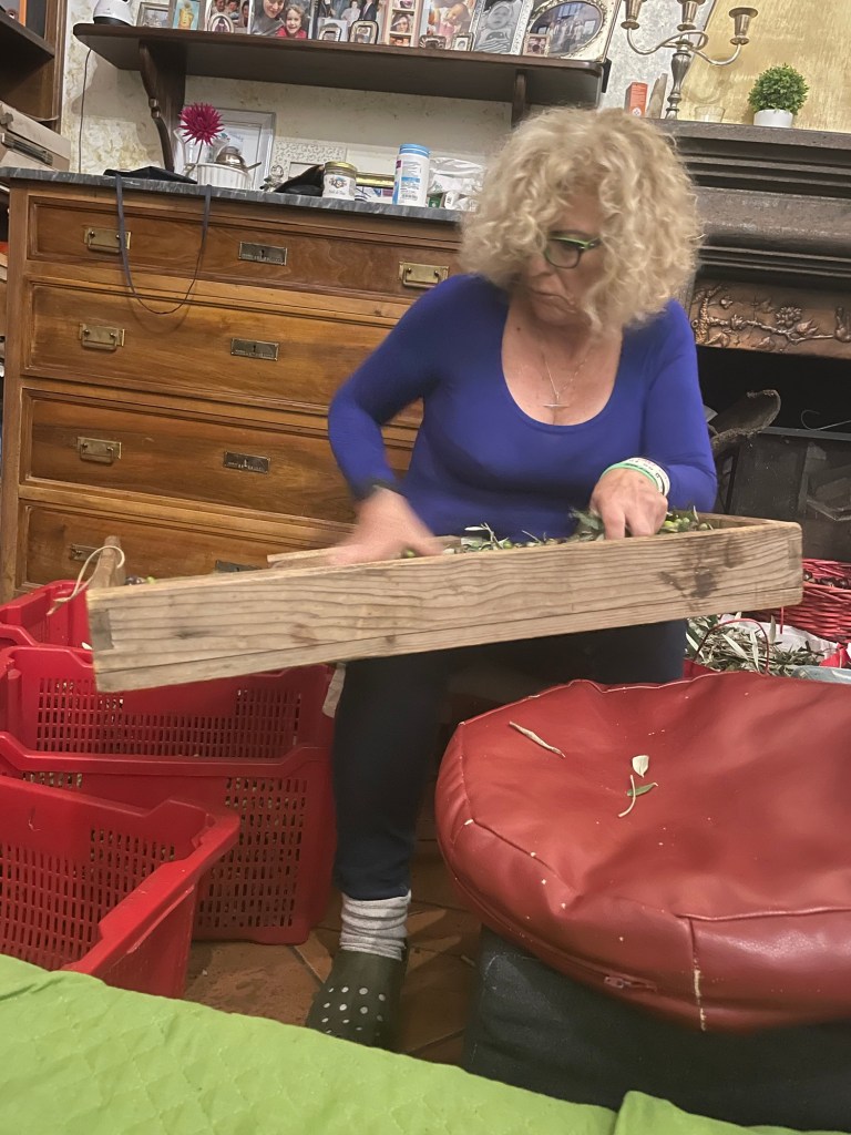 Immagino di essere lì, sessant’anni fa, seduta su una vecchia sedia di legno in un casolare rustico, immersa nel calore che emana il camino. Davanti a me, un gruppo di signore, amiche, zie e vicine, chine sulle tavole ruvide, con le mani veloci che scorrono tra le olive, ripulendole dalle foglie e dai piccoli ramoscelli. Ridono e chiacchierano tra loro, con quel modo schietto e semplice di chi condivide la vita quotidiana, senza fretta, senza maschere.
